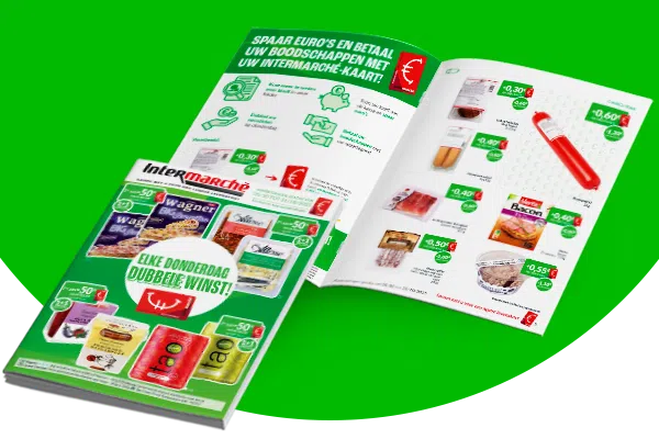 Elke week staan onze folders vol nieuwe promoties. Bovendien belonen we onze trouwe klanten met maandelijkse aanbiedingen die enkel beschikbaar zijn voor houders van een Intermarché-kaart. Blader hier door onze folders om niets te missen.