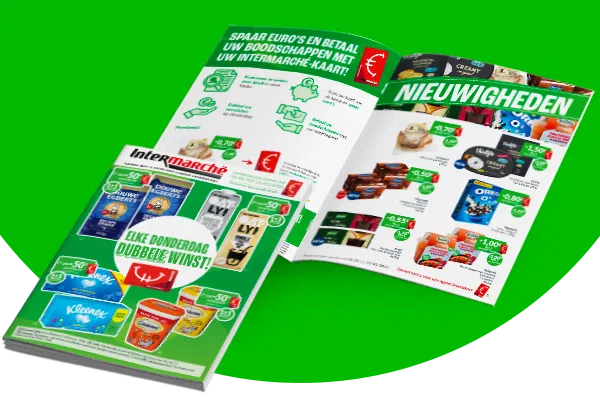 Verzamel euro’s in alle Intermarchés in België dankzij groene promoties in onze folders. Betaal aan de kassa met uw Intermarché-kaart, het is net een echte portemonnee.