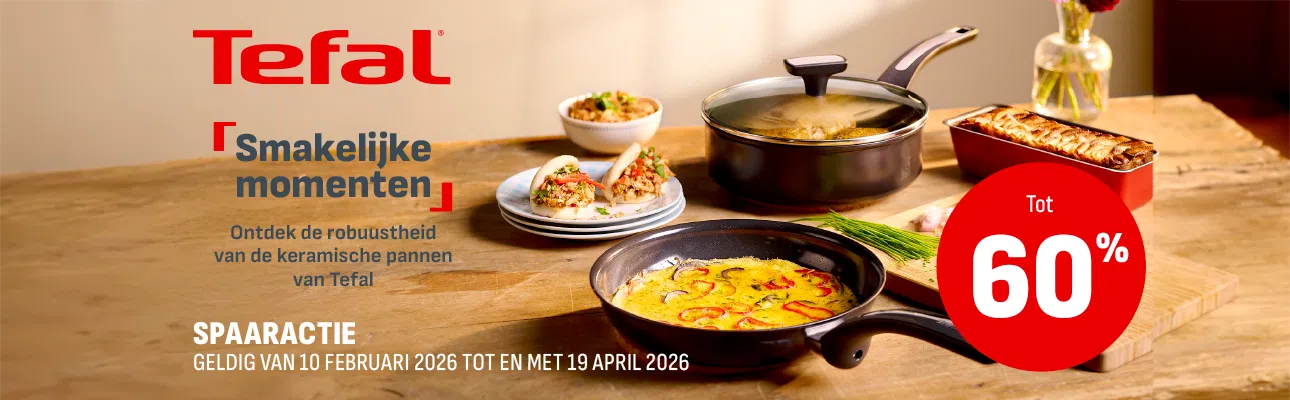 Profiteer van tot wel 60% korting op een Tefal-artikel, hieronder weergegeven.
