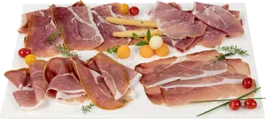 Ontdekkingspakket gedroogde ham Bevat: – 100g ham uit de Savoie – 100g serranoham – 100g Italiaanse ham – 100g zwarte-woudham...