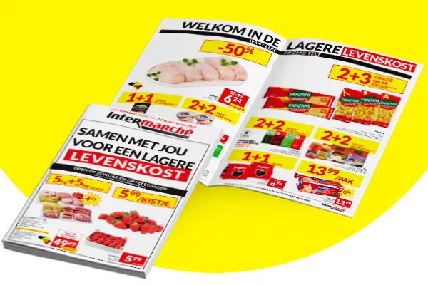 Of het nu gaat om acties via gratis 1+1 type pack, directe kortingspercentages of kortingen in euro’s op je Intermarché-kaart, wij steunen je dagelijks voor een goedkoper leven.