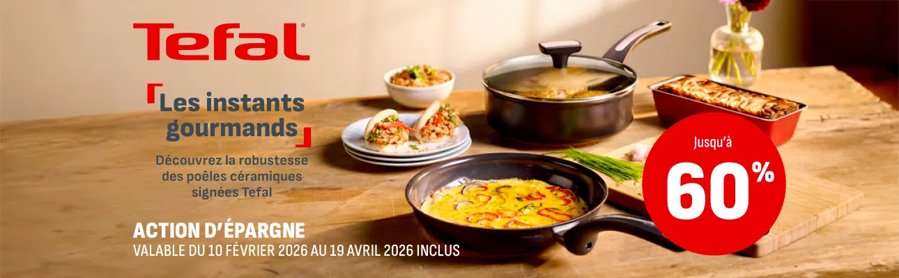 Dès 5 cachets, bénéficiez jusqu’à 60% de réduction sur un article Tefal présent sur la carte épargne.