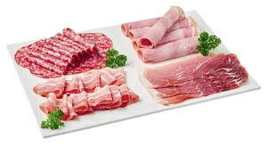Contient : ± 125g de lard maigre fumé ± 125g de rosette ± 125g de jambon de Savoie ± 125g de jambon cuit barbecue...