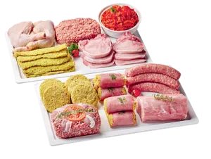 Contient : ± 1kg de pain de viande porc et bœuf ± 1kg de steaks suisses ± 1kg de saucisses porc et bœuf ± 1kg de roulades de porc ± 1kg de rôti de por...