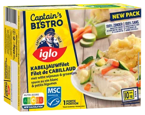 Captain’s Bistro Iglo Saumon aux légumes sauce moutarde, Cabillaud aux légumes ou Parmentier de poisson – 450g Au prix habituel de 7,49€ à 9,49€ le pack...