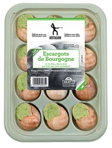 Escargots de Bourgogne frais Au vin blanc, beurre et ail 12 pièces – 120g...