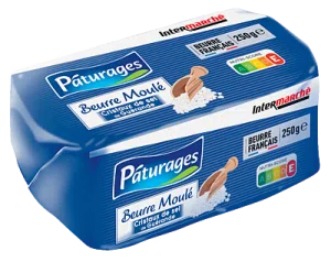 Beurre Moulé doux Bio – 250g Au prix habituel de 3,49€ à 3,75€ le pack...